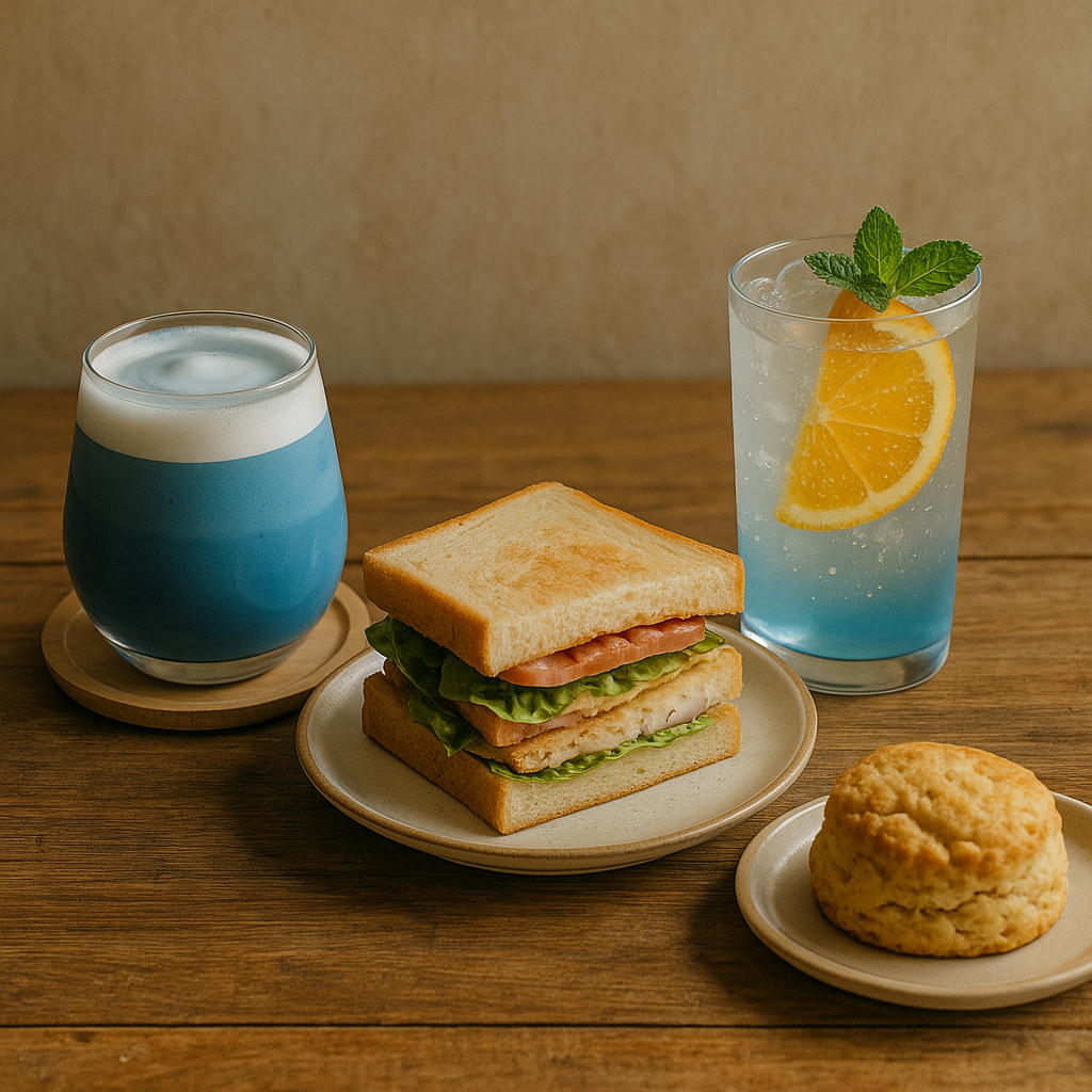 以海為靈感,調出專屬的藍色特調與季節限定飲品。 從海鹽拿鐵到藍柑氣泡飲,每一杯都是專屬於瑞布的海岸風味。